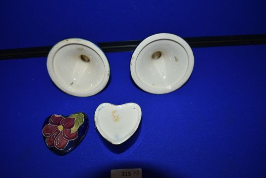 Moorcroft Anemone Pattern Pair of Candlesticks and Lidded Pot