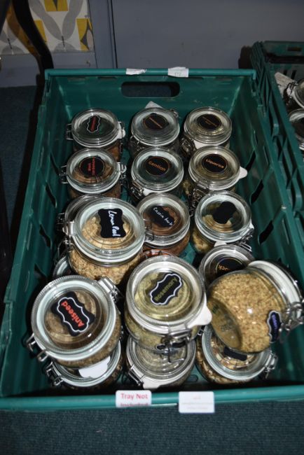 *Nineteen Medium Glass Storage Jars Containing Botanicals