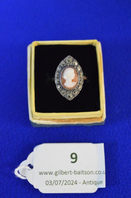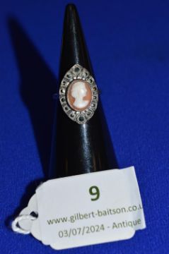 9ct Gold & Silver Cameo Ring with Marcasites 4g Size: J