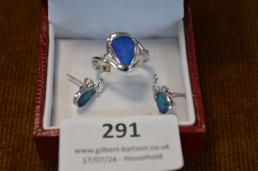 Sterling Silver Ring with Blue Gemstones and Matching Stud Earrings