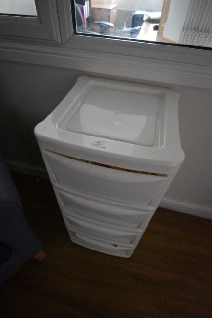 *Four Drawer Plastic Storage Unit Containing Assorted Colouring and Other Craft Items