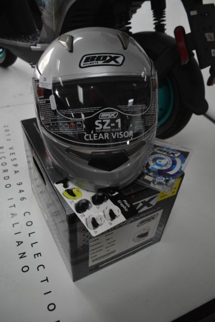 *Box Flip Front SZ1 Motorbike Helmet in Silver with Clear Visor Size: XL