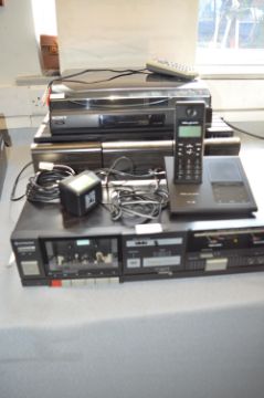 Hitachi Tape Deck, Sony Turntable, and Cassette Tape Storage Case