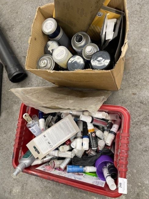 *Two Boxes of Assorted Aerosols, Paints, etc.