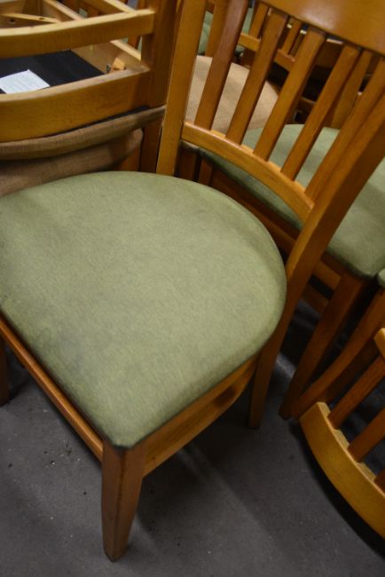 Four Wooden Chairs with Green Upholstered Seats