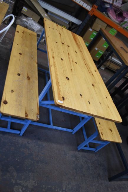 180x74cm Wooden Topped Picnic Bench with Blue Metal painted Frame