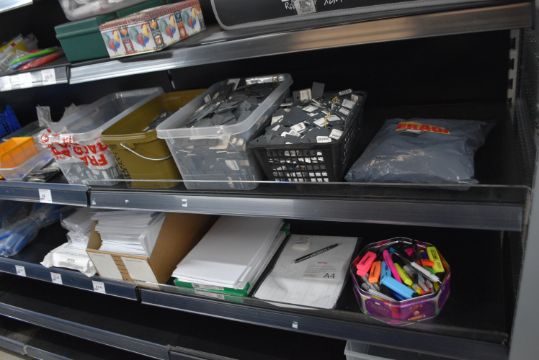*Contents of Shelves to Include Assorted Bells, Retention Sling V2, Stationery, etc.