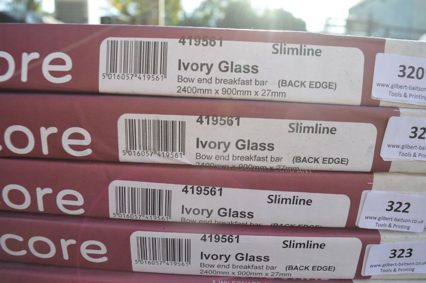 *Encore Bow End Breakfast Bar Slimline Ivory Glass 2400x900x27mm