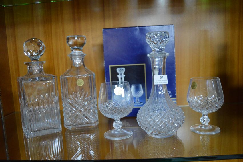 Cristal D'Arques 3pc Brandy Set plus Two Lead Crystal Decanters