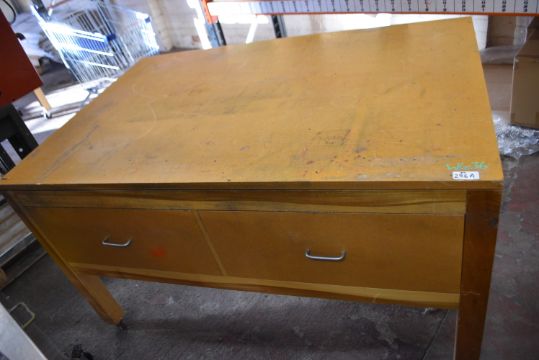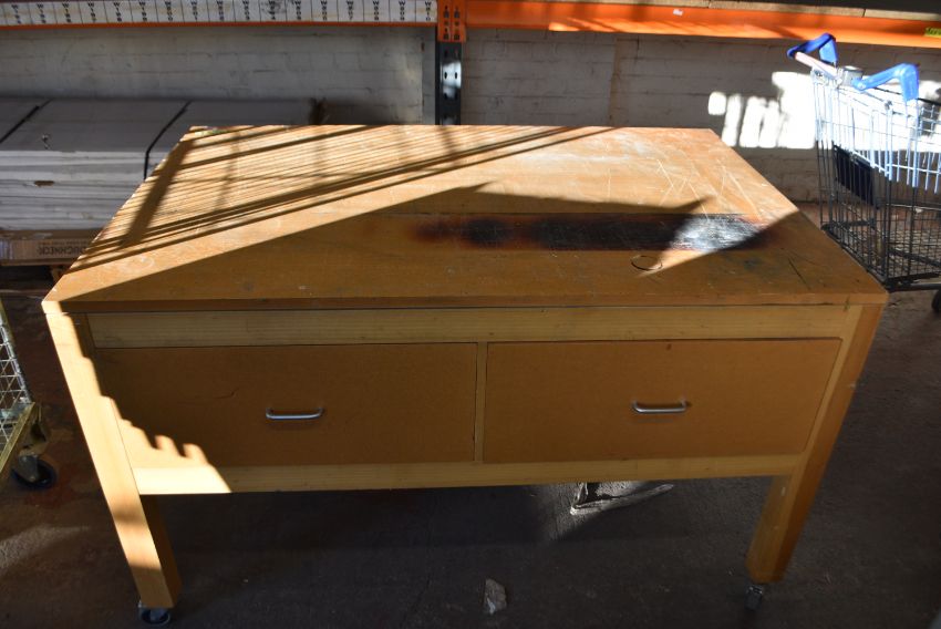 *Two 150 x 100cm Rectangular Wood Topped Table with Four Drawers on Wheels