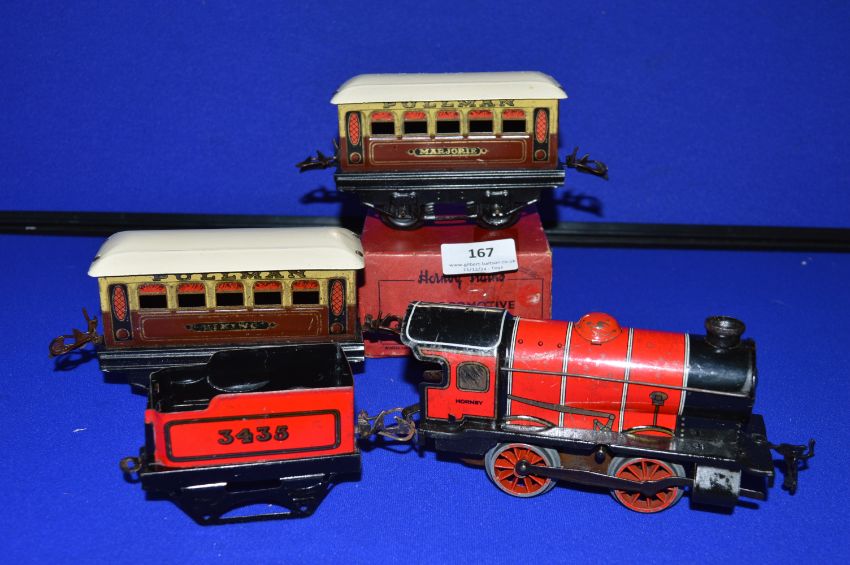 Pre War Hornby O Gauge Clockwork Tender Loco with Two Pullman Coaches