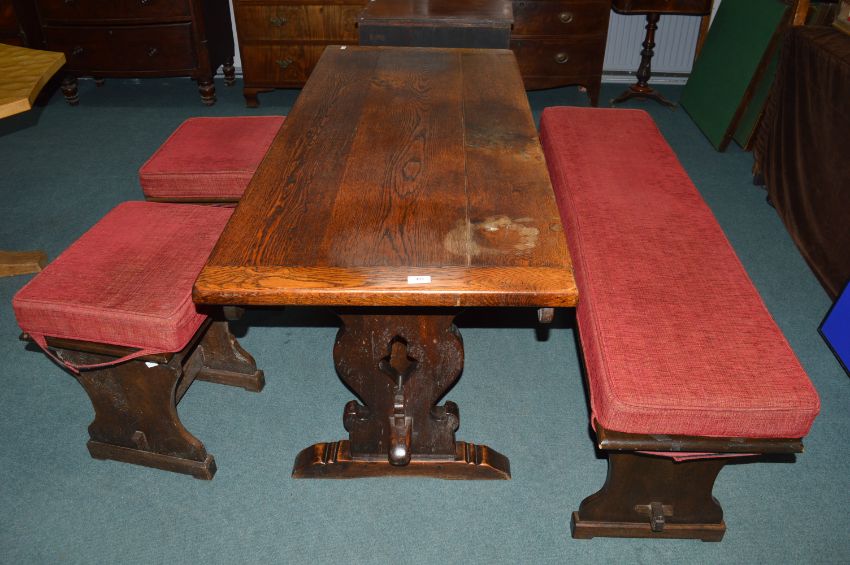 Solid Oak Refectory Style Table with Bench and Two Stools