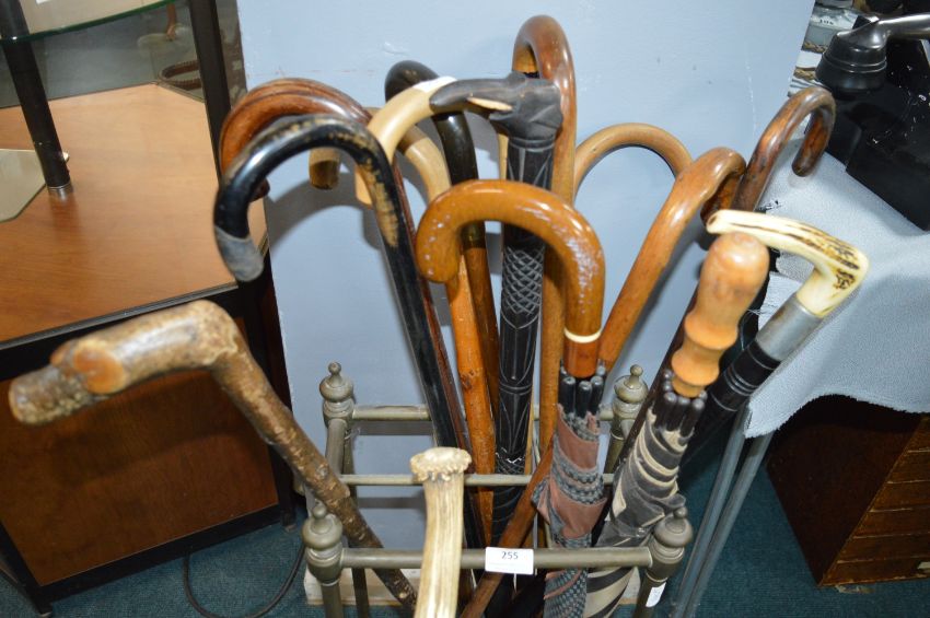 Brass Stick Stand Containing Walking Stick and Umbrellas