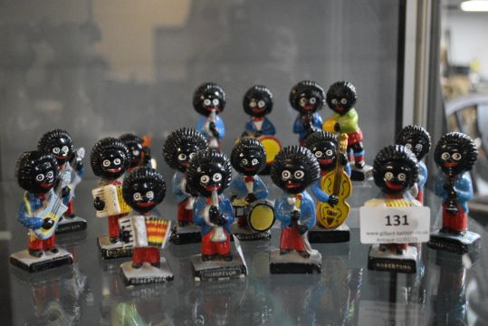 Seventeen Robertsons Golly Figures Notice from the the-saleroom.com: These items are listed on the basis they are illustrative of a bygone culture in which there were different social norms. We understand the potential controversy surrounding this type of item but believe that providing transparent information about historical context fosters greater understanding of our complex cultural history.
