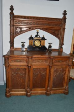 Victorian Pugin Style oak Sideboard with Ornate Craved Detail (missing one mirror)