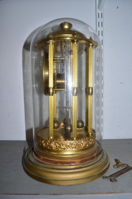 Brass Skeleton Clock in Glass Dome