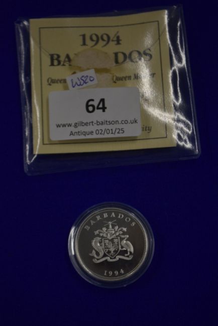 Royal Mint 1994 Barbados Silver Dollar Commemorating The Queen Mother