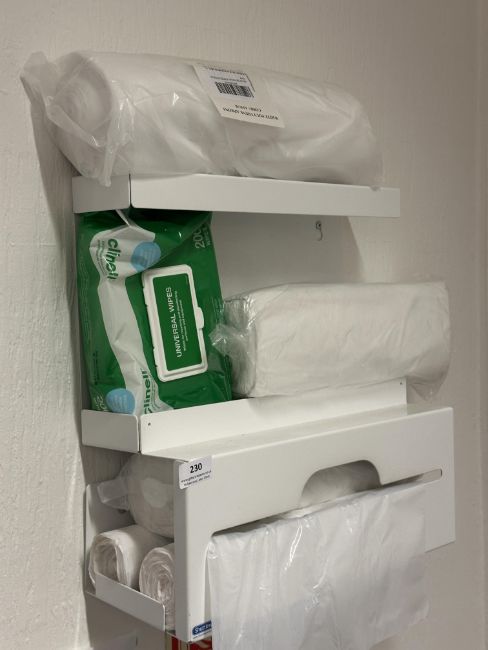 *Wall Mounted Disposable Apron and Wipe Dispenser, and Two Clip Frames