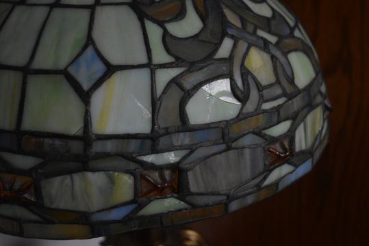 Elephant Table Lamp with Leaded Glass Shade (damage to shade)