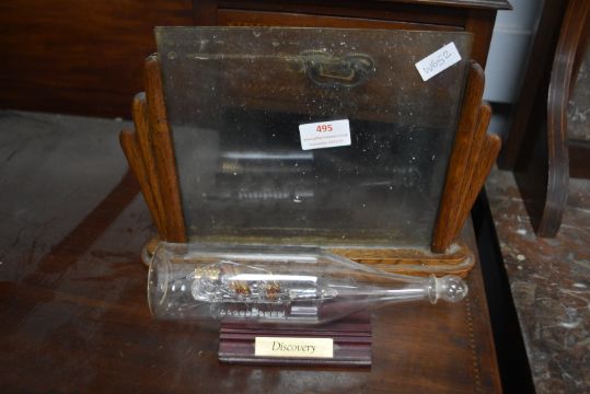 Small Art Deco Oak Photo Frame, and a Ship in a Bottle