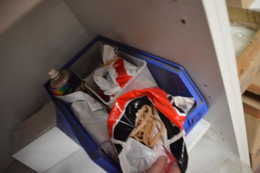 *Contents of Upper Shelves to Include Small Rolls of Clear Shrink Wrap, and Elastic Bands