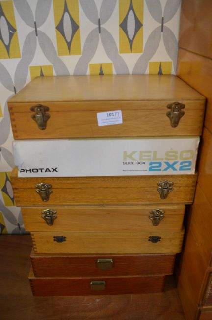 Seven Photax Wooden 2x2 Slide Storage Boxes Including Some Slides