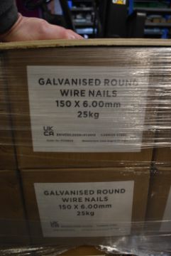 *2x 25kg Box of Galvanised Round Wire Nails 150x6mm