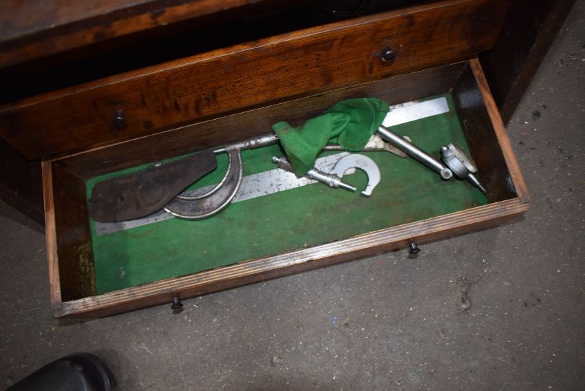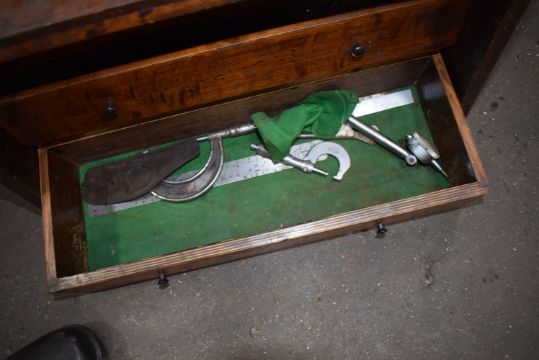 *Antique Wooden Tool Chest and Contents Including Micrometers, Callipers, etc.