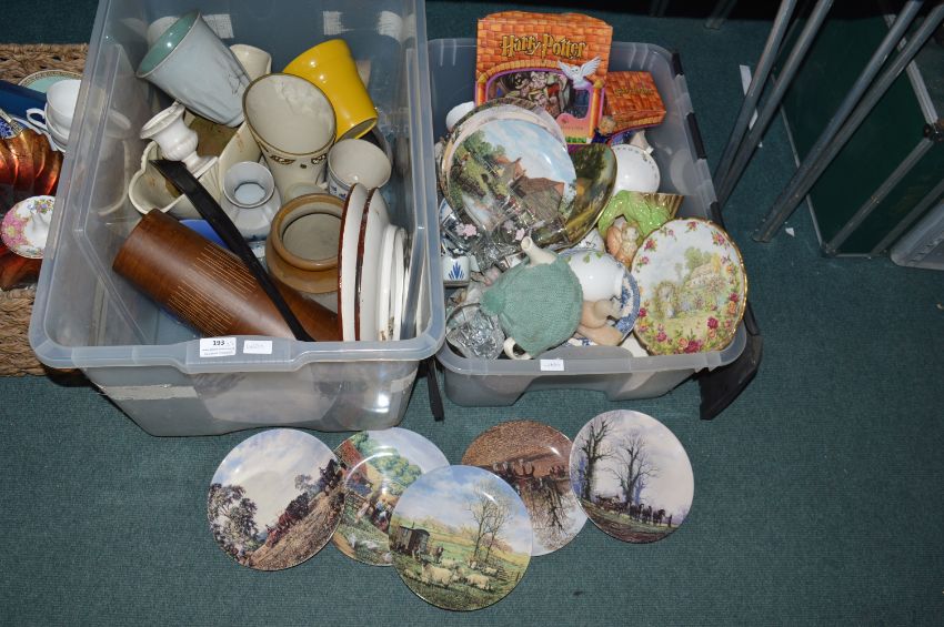 Two Storage Boxes, Pottery, Glassware, etc.