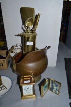 Copper Coal Bucket, Brass Companion Set,