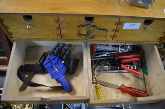 Six Drawer Cabinet Containing Watch Making Tools and Parts