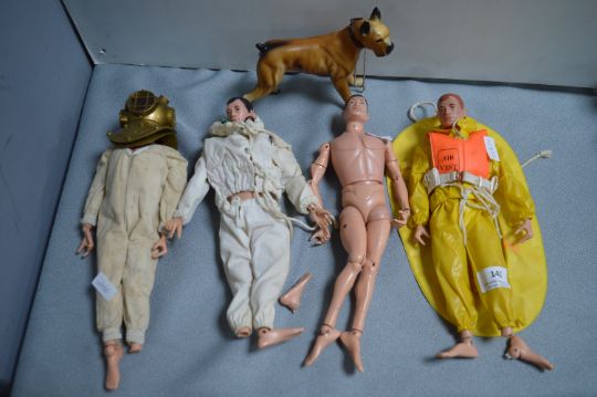 Action Man Figures and a Dog (some faults)