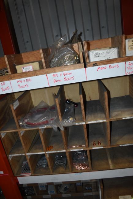 *Contents of Shelves 3 and 4 to Include Assorted Cup Head Square Bolts, Welding Attachments, Mig Welder Parts, Welding Rods, French Chalk, etc.