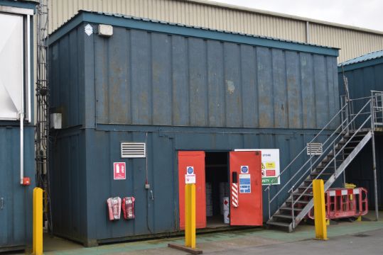 *32ft x 10ft Two Storey Storage Containers (ground floor: flammable liquid store, top floor: open plan with end doors)