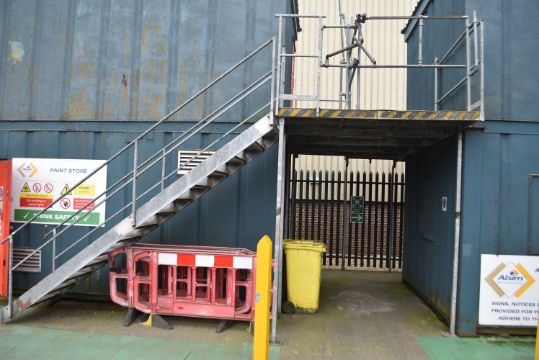 32’ x 9’ 3+1 Toilet Block, 3 x 20’ x 8’Steel Stores, 3 x 4800lts Waste Tanks, Staircases, Steps and Landings, Manufacturing Components, Steel Stillages and Scaffolds,