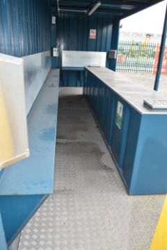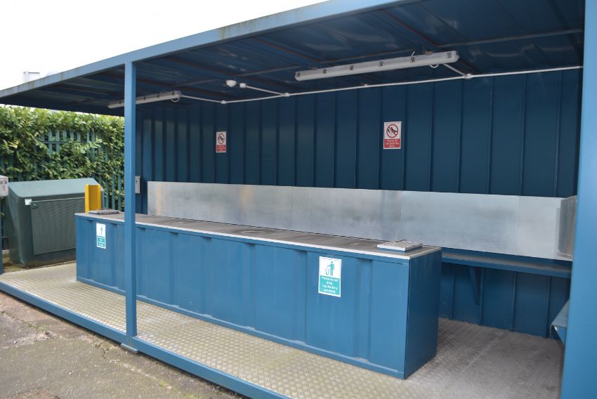*24ft x 8ft Open Sided Smoking/Dining Area with Aluminium Checker Plate Floor, Seating to Rear, and Workbench with Wastebin Facilities, and Lighting