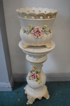 Decorative Pottery Jardiniere with Floral Design