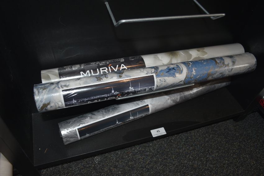 *Contents of Bay of Shelving to Include Display Rolls, and 3x Assorted Rolls of Mariva Wallpaper