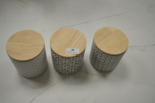 *Ceramic Tea, Coffee, and Sugar Canisters with Wooden Lids