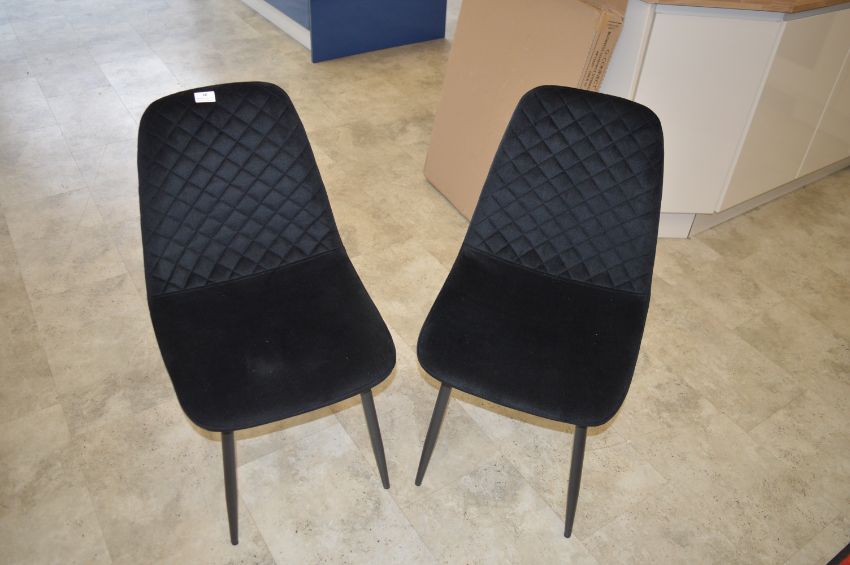 *Pair of Black Dining Chairs with Upholstered Seats and Quilted Backs