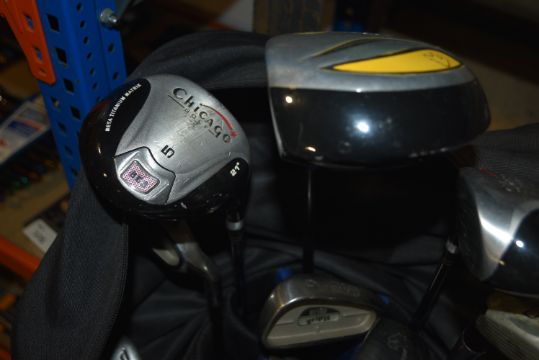 Slazenger Golf Bag Containing Golf Clubs, Golf Balls, and Other Accessories