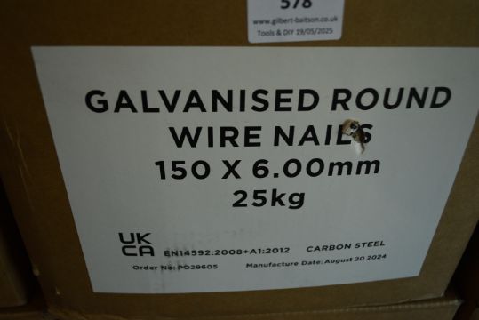 *Box of 25kg Galvanised Round Wire Nails 150x6mm