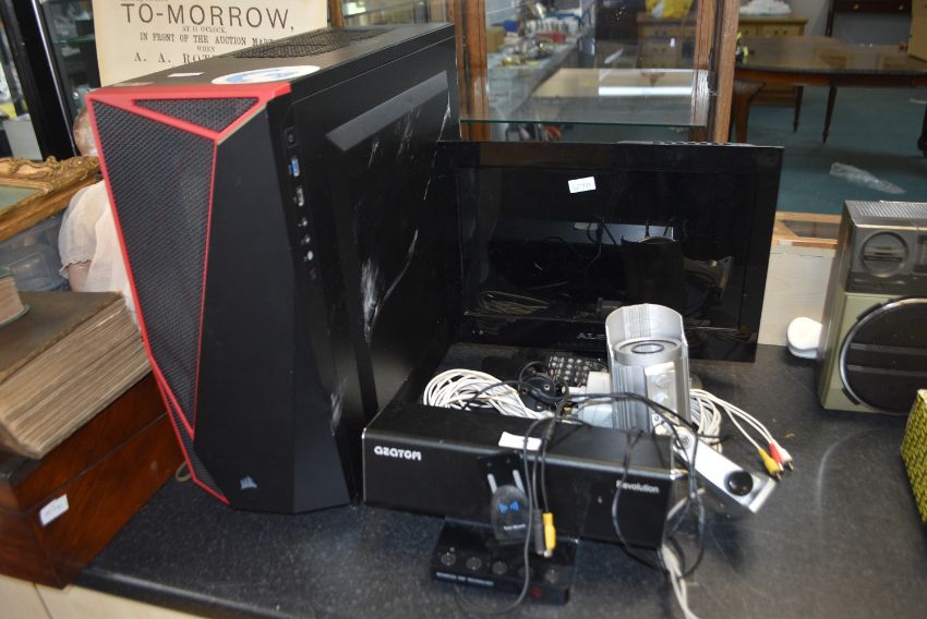 Alba 16" LED TV with Remote plus Assorted Electricals and Computer Casing
