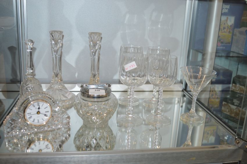 Cut Glass Lead Crystal Glassware Including Candlesticks, Clock, etc.