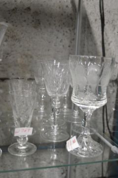 Set of Six Etched Wine Glasses plus Sherry Glasses, etc.