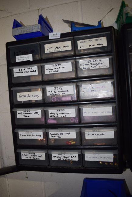 *Eighteen Drawer Components Unit Containing Assorted Mig and Tig Welding Spares