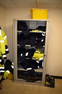 *Quantity of Branded Workwear, Hi-Vis Jackets, Safety Boots, Flame Retardant and Other Overalls, and a 6ft Stationery Cabinet with Tambour Doors