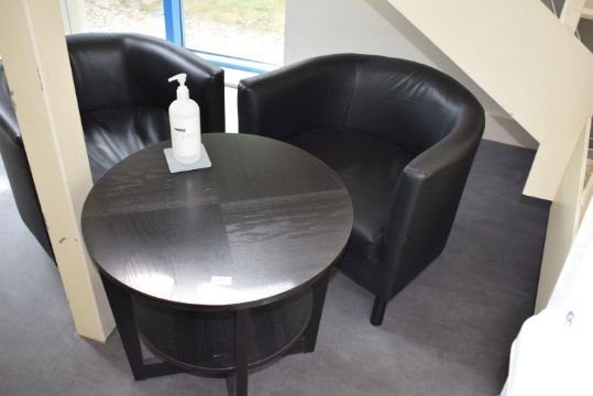 *Pair of Black Faux Leather Tub Seats, and a Black Ash Circular Table
