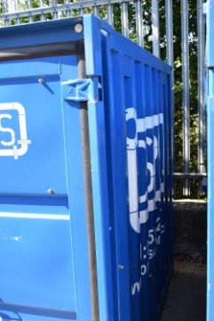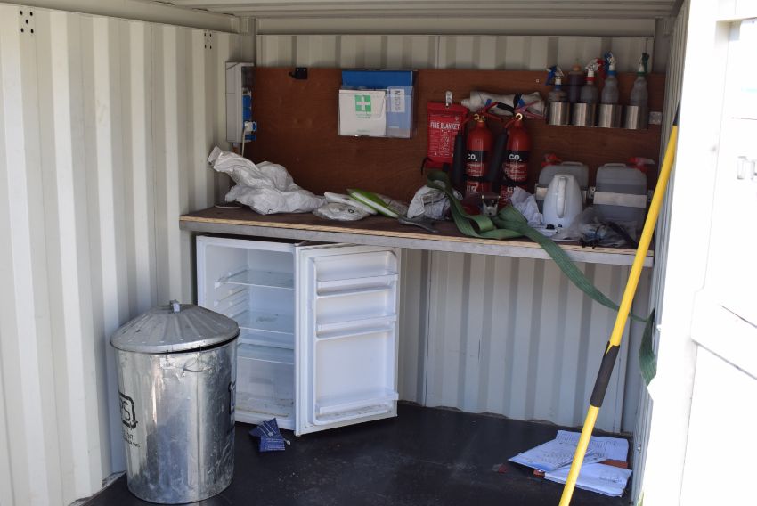 *Steel Storage/Welfare Unit Enclosed by Double Doors ~190x200cm x 190cm high, to Include Two CO2 Fire Extinguishers, Undercounter Refrigerator, and a Fire Blanket