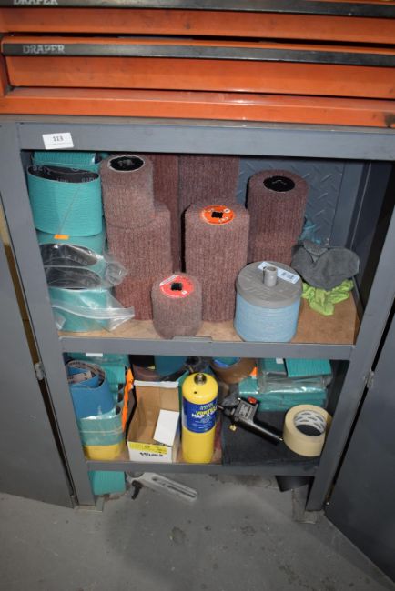 *Steel Storage Cabinet Containing Assorted Abrasive Papers, Pads, and Discs